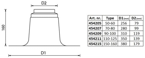 Geschikt voor grotere aansluitingen dankzij Ø200 mm diameter