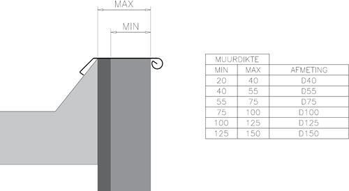 Speciaal ontworpen voor deklijst D125 (muurdikte 100–125 mm)