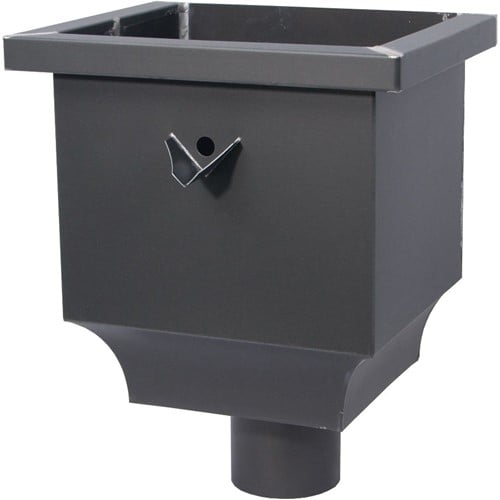 Deze Zink Noir vergaarbak type Brabant met 100 mm aansluiting vangt regenwater efficiënt op en voert het gecontroleerd af, terwijl de antracietzwarte afwerking een moderne en uniforme uitstraling biedt.